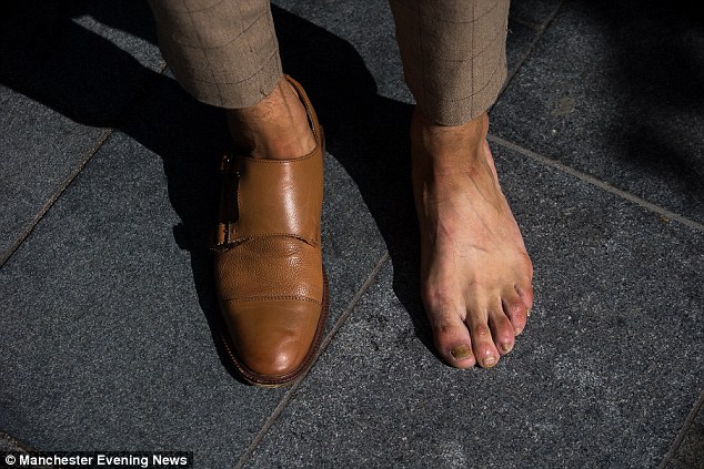 在改造完外型之后,他觉得自己的双脚过大,衣服穿搭起来不好看,所以他利用了中国传统的方法–裹小脚的方式,将鞋号从10号大大缩减至6号半。