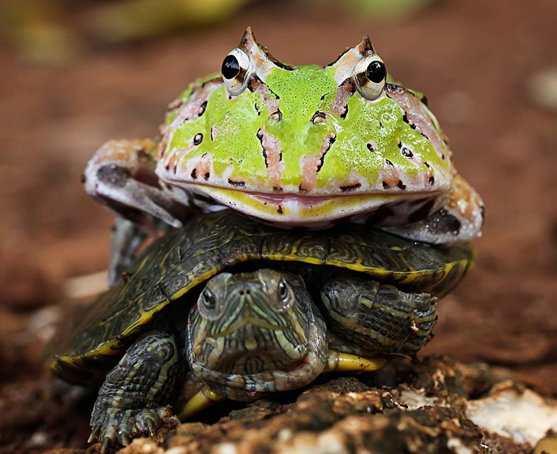 印尼男子拍青蛙骑乌龟搭便车有趣一幕 令人捧腹(组图)