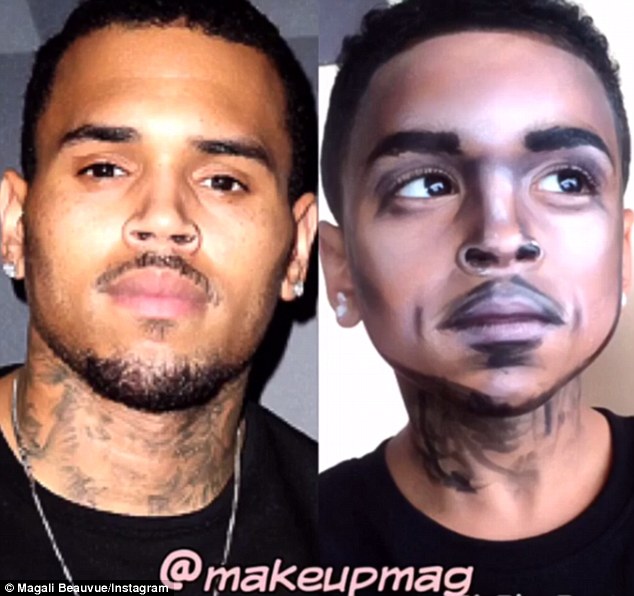 在这次创作之前,Beauvue还将一名5岁男孩化妆成了美国流行歌手克里斯·布朗(Chris Brown)的模样。