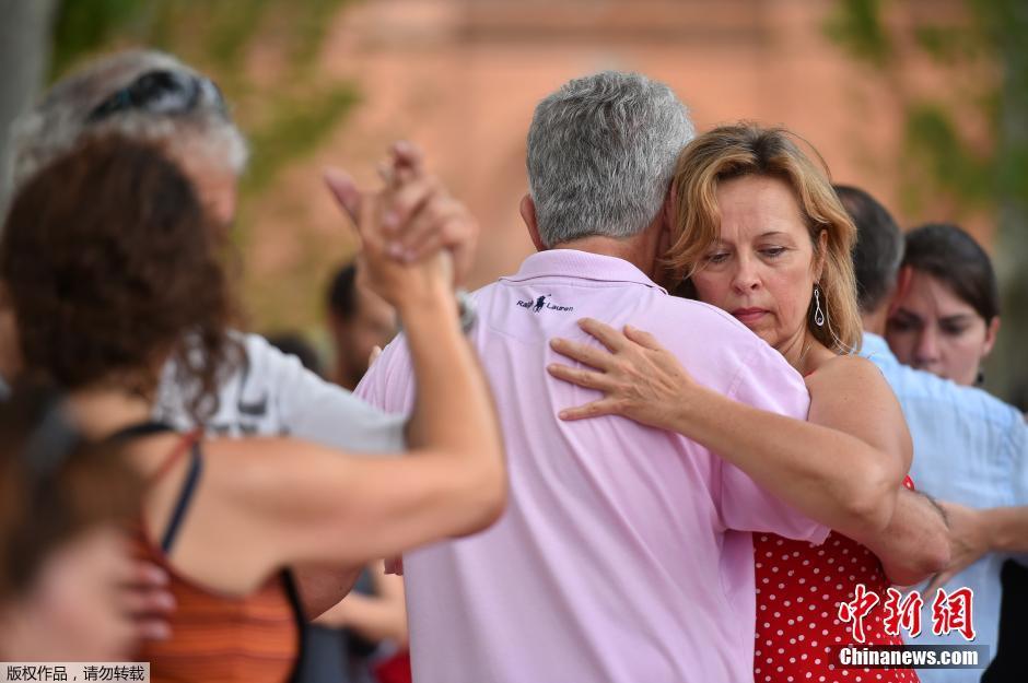 当地时间2016年7月4日,法国图卢兹,当地举行探戈文化节,民众在圣皮埃尔广场跳探戈庆祝。