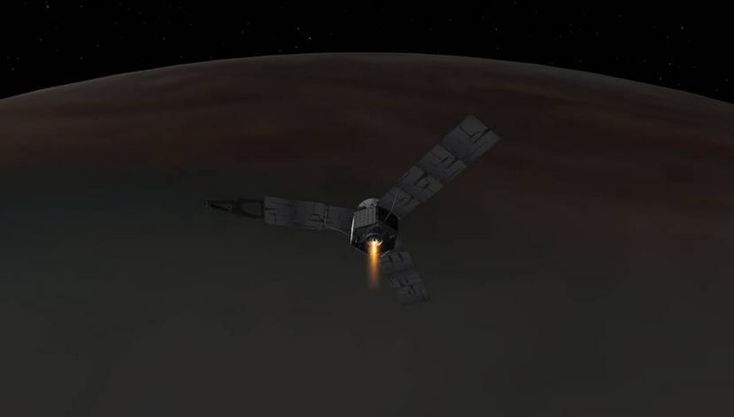 据美国有线电视新闻网7月5日消息,美国航天局朱诺太空探测器成功进入木星轨道。此前,NASA朱诺号木星探测器已经历经近5年在太空旅行跋涉了27亿公。图为NASA官网图片。目前,点燃阶段结束,控制室确认主发动机已关闭。记者 赵衍龙