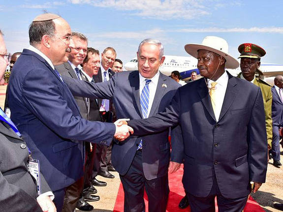 时任乌干达总统伊迪·阿明于1979年被推翻。穆塞韦尼曾参加反对阿明独裁统治的斗争。“40年前的深夜,他们降落在一个向恐怖分子提供庇护的凶残独裁者领导的国家。今天,我们在白天降落,受到一名与恐怖主义斗争的总统的欢迎,”内塔尼亚胡说。