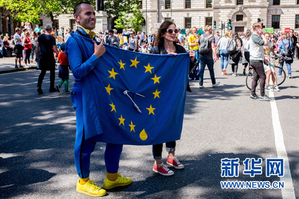 7月2日,在英国伦敦,人们参加反对“脱欧”公投结果的游行。新华社发