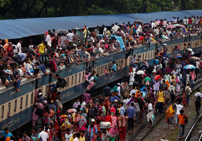 当地时间2016年7月5日,孟加拉国达卡,穆斯林搭乘火车回家庆祝开斋节。