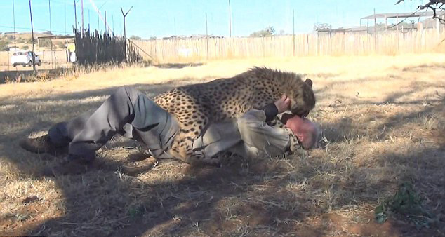 在一段走红YouTube视频网站的视频中,当野生动物保护志愿者多尔夫 沃克(Dolph Volker)回到一年前帮助照顾过一只10个月大猎豹的南非猎豹保护中心,与该猎豹重逢时,发生了温情脉脉的一幕。