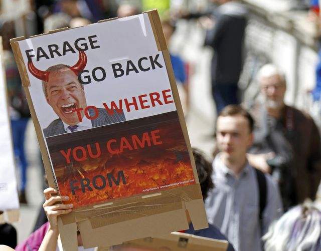 反对脱欧的英国民众对力主脱欧的独立党领袖法拉奇很“愤怒”。