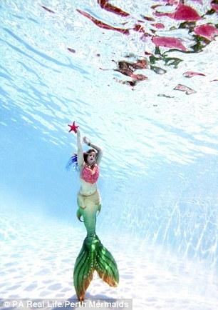 澳洲闺蜜斥巨资扮美人鱼 同鲨鱼游泳(图)
