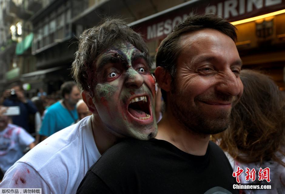 西班牙民众扮丧尸街上游走 迎接奔牛节(组图)