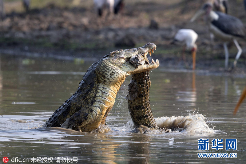 2016年7月6日报道,非洲津巴布韦,在马纳潭国家公园上演了同类厮杀的一幕。一只凶狠的鳄鱼咬住另一只弱小的鳄鱼的下巴,一个猛摔,把小鳄鱼砸进水中,池塘里溅起巨大的浪花。小鳄鱼显然不是强壮的鳄鱼的对手,在敌人面前,它也只能乖乖的束手就擒。德国野生动物摄影师Jens Cullman拍下了这惊险刺激的一幕。东方IC