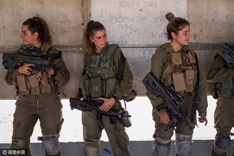 当地时间2016年7月6日,以色列内盖夫荒漠,士兵在射击场训练。卡拉卡尔战斗营成立于2004年,成员以女性为主。(Ilia Yefimovich/Getty Images/视觉中国)
