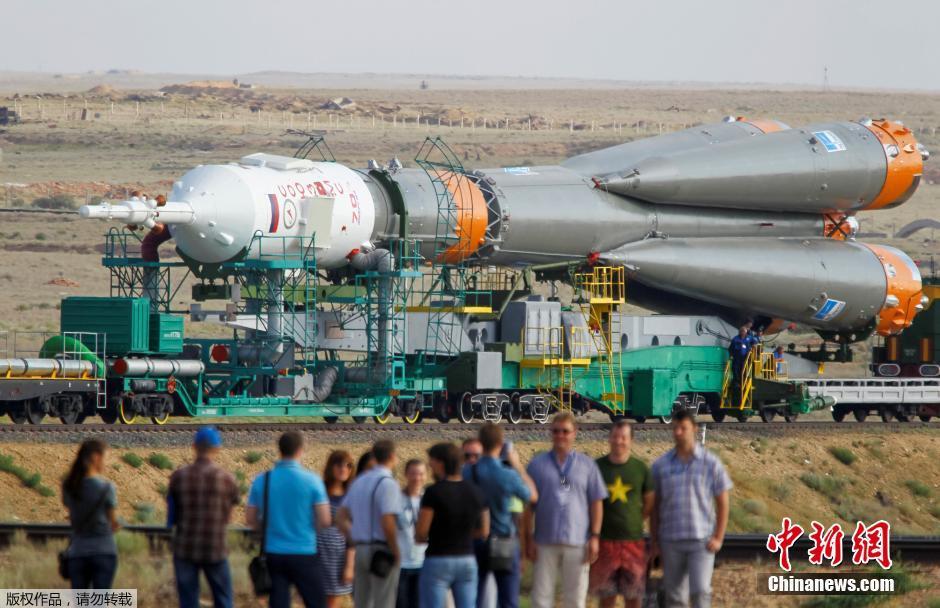 当地时间2016年7月6日,哈萨克斯坦拜科努尔,日本宇航员Takuya Onishi、俄罗斯宇航员Anatoly Ivanishin和美国宇航员Kathleen Rubins在登上“联盟号”宇宙飞船前亮相。7月7日,“联盟号”载人飞船将搭载一名俄罗斯宇航员、一名美国宇航和一名日本宇航员员共3人前往国际空间站。图为即将发射的联盟号飞船。