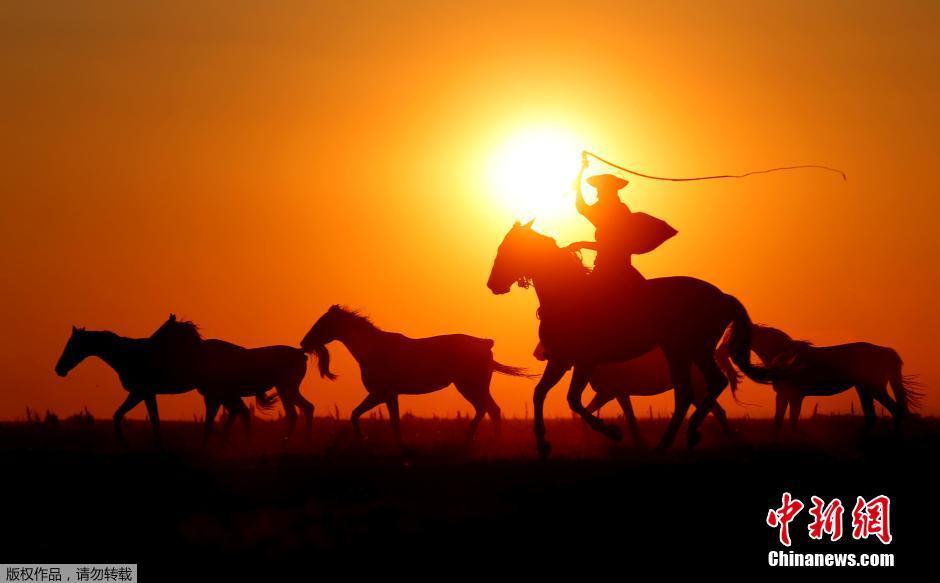当地时间2016年6月29日至30日,匈牙利霍尔托巴吉,古老的牧民在匈牙利大平原上牧马。