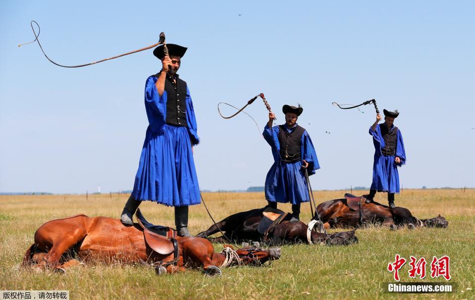 当地时间2016年6月29日至30日,匈牙利霍尔托巴吉,古老的牧民在匈牙利大平原上牧马。