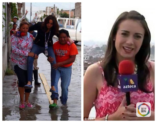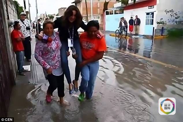 墨西哥女记者报道洪水怕湿鞋被抬着走 遭网友恶搞