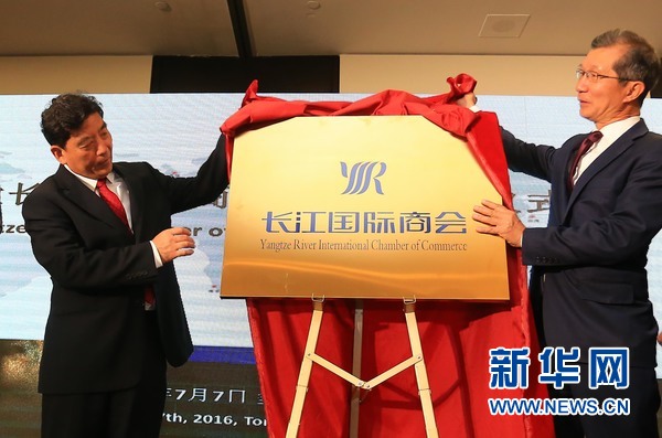 7月7日,在加拿大安大略省马克姆市,中国湖北省副省长曹广晶(左)与安大略省国际贸易厅厅长陈国治在活动中,为新成立的加拿大“长江国际商会”揭牌。为庆祝加拿大安大略省马克姆市与中国湖北省武汉市互结友好城市十周年,湖北省代表团7月7日到访马克姆市并与当地企业签署多项合作协议,推动两地的友好关系与经贸合作关系进一步发展。 新华网发(邹峥摄)