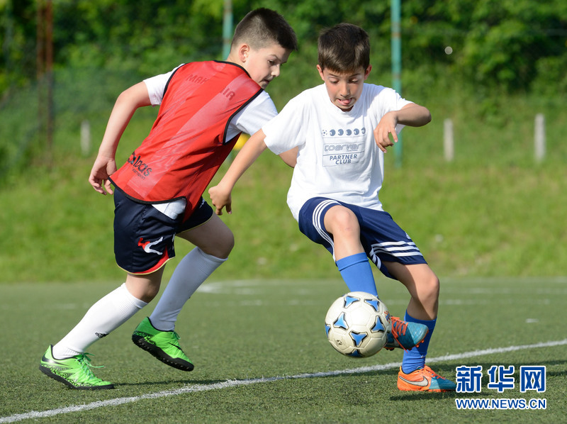 在克罗地亚少年足球培训中心,小球员在训练中。新华网发(米绍·利沙宁摄)