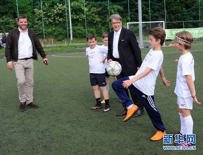 在克罗地亚少年足球培训中心,米罗(左一)和布拉泽维奇在训练场。新华网发(米绍·利沙宁摄)