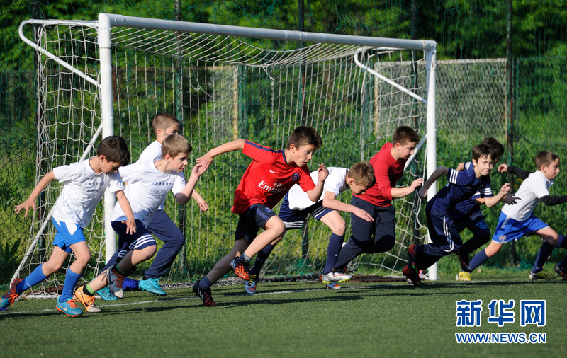 在克罗地亚少年足球培训中心,孩子们在训练中。新华网发(米绍·利沙宁摄)