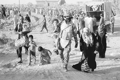 6月17日,从伊拉克费卢杰逃离的难民抵达一处安全地带。 新华社发