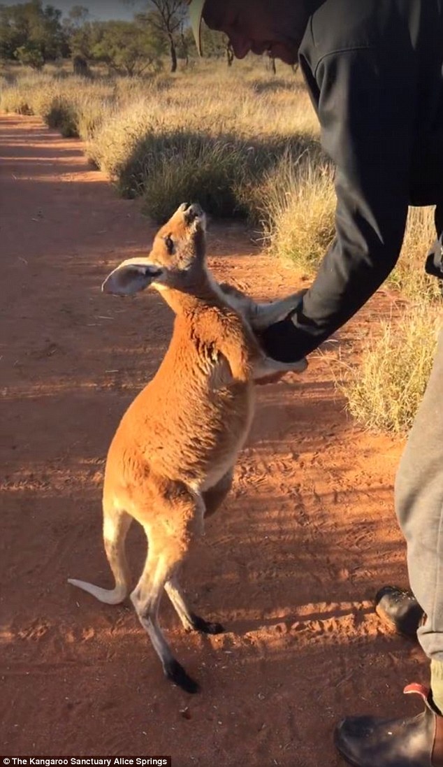 黏人!袋鼠宝宝拽住主人不让离开(图)