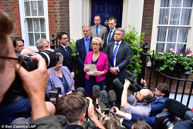 法新社最新消息称,7月11日,安德里亚·利德索姆戏剧性的宣布退出英国保守党领袖的选举,不再可能成为英国首相,这使特丽莎·梅成为目前唯一一个竞选接替大卫·卡梅伦的候选人。图为利德索接受记者采访。