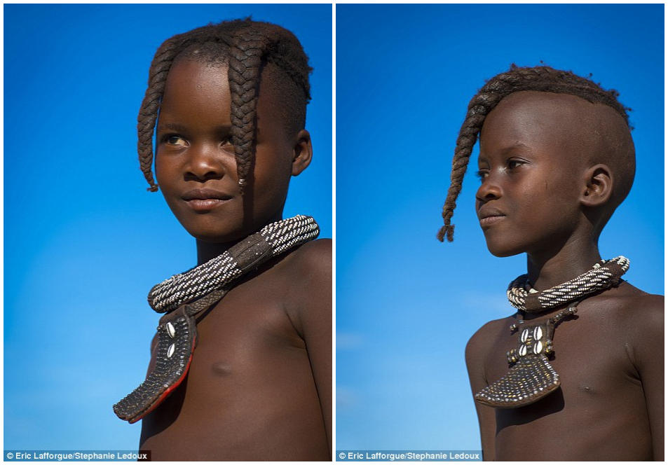 辛巴族的小女孩们通常扎两个辫子,双胞胎姐妹则各扎一个辫子,她们的发型由她们所属的父系氏族决定。
