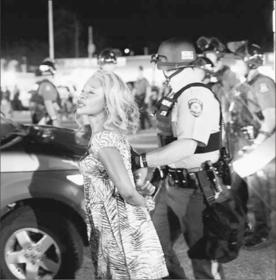 2015年8月10日,美国密苏里州圣路易斯县,民众持续举行游行示威,抗议警察粗暴执法导致社会动荡。多名示威民众被警察拘捕或采取强制措施。人民视觉