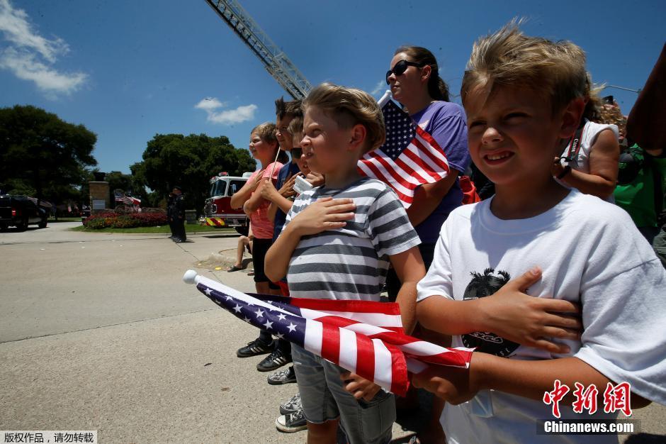 美国遇袭身亡警察出殡 送葬车队绵绵不绝