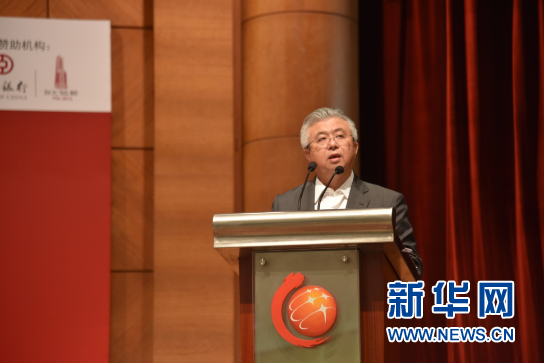 7月13日,“2016新中商务论坛”在新加坡举行。图为论坛举办当天,新加坡中华总商会会长蔡其生发表致辞。新华网发(杨赛 摄)