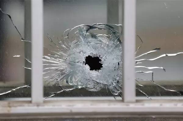 2015年1月7日,在法国巴黎,遭受袭击的《沙尔利周刊》总部的窗户玻璃被子弹射击后留下弹孔。