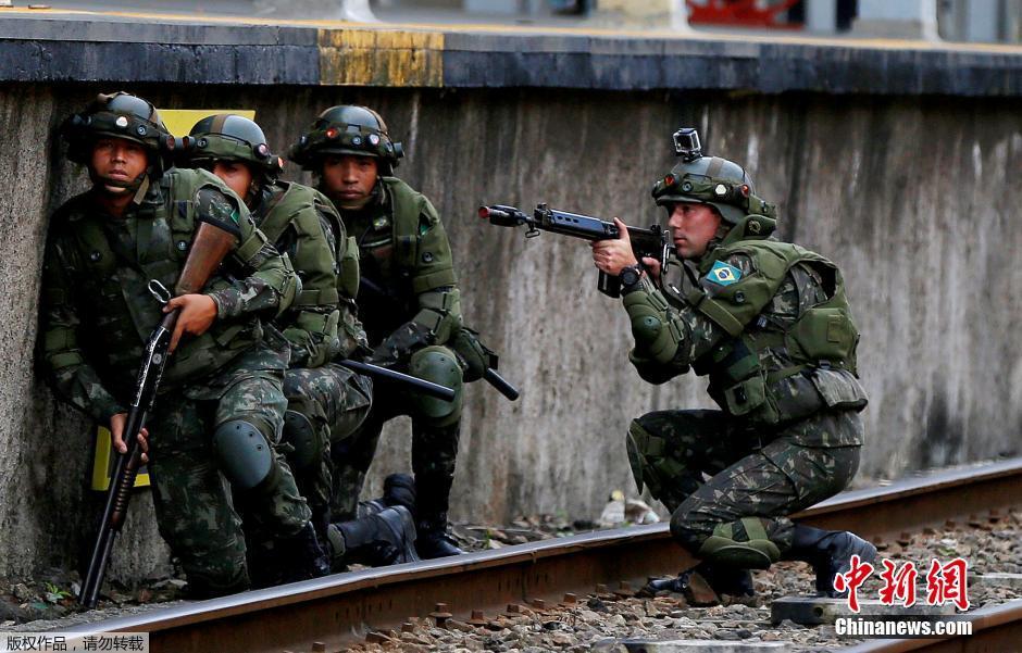 巴西军队火车站展开反恐演习 “备战”里约奥运会(组图)