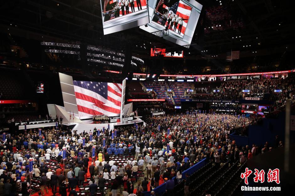 当地时间7月18日,美国共和党全国代表大会在俄亥俄州最大城市克利夫兰拉开帷幕,约5万名代表、党员和媒体参会。中新社记者 廖攀 摄