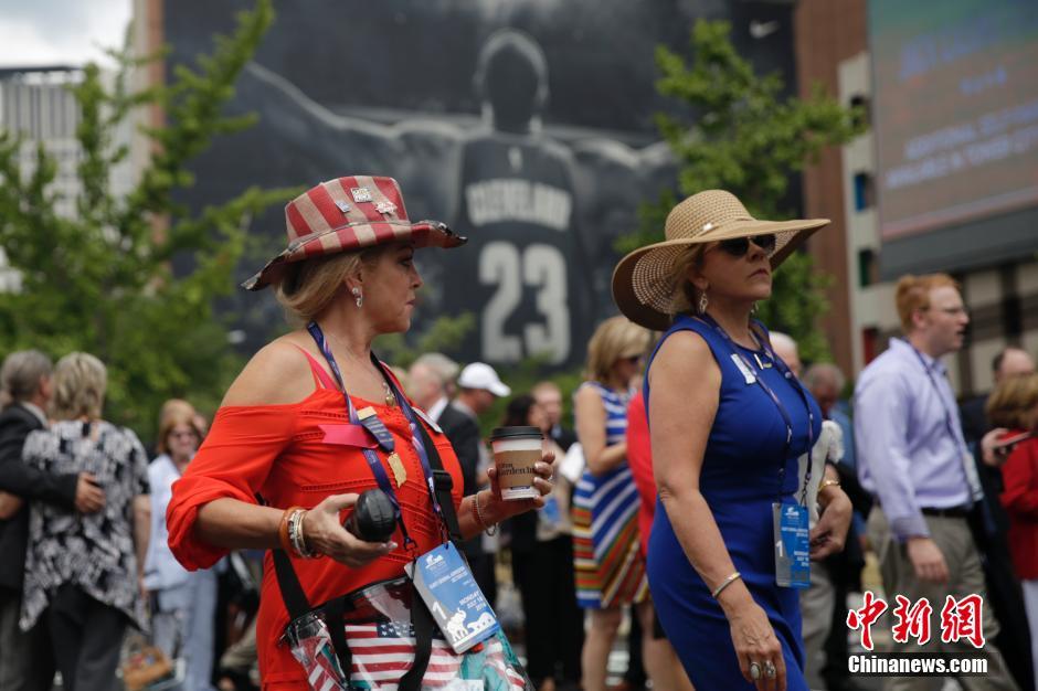 当地时间7月18日,美国共和党全国代表大会在俄亥俄州最大城市克利夫兰拉开帷幕,约5万名代表、党员和媒体参会。图为与会人员进场。