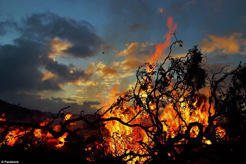 摄影师身处火山中拍熔岩烧毁树木瞬间(组图)