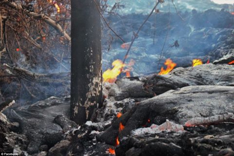 摄影师身处火山中拍熔岩烧毁树木瞬间(组图)