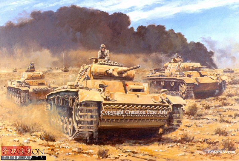 二战北非战场,加查拉战役期间(1942年5月26日至6月21日),德军III号和II号坦克在沙漠中推进。