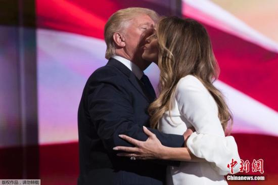 当地时间2016年7月18日,美国俄亥俄州克利夫兰,美国共和党全国代表大会举行,总统候选人特朗普与妻子梅拉尼娅出席。美国共和党全国代表大会于18日至21日在俄亥俄州的克利夫兰举行,大会将正式提名特朗普为该党总统候选人。