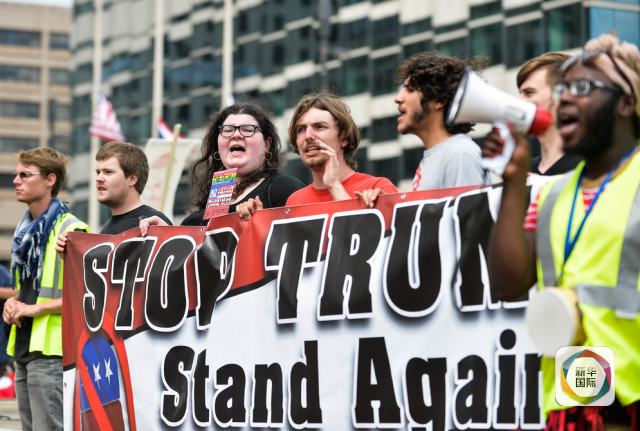 7月18日,在美国俄亥俄州克利夫兰,人们参加反对美国共和党总统竞选人唐纳德·特朗普的抗议示威。(新华社记者鲍丹丹摄)