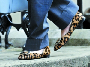 她入主唐宁街10号那天,足蹬一双Roger Vivier豹纹经典平底鞋,狂野性感的豹纹与中规中矩的灰色套装形成强烈对比。