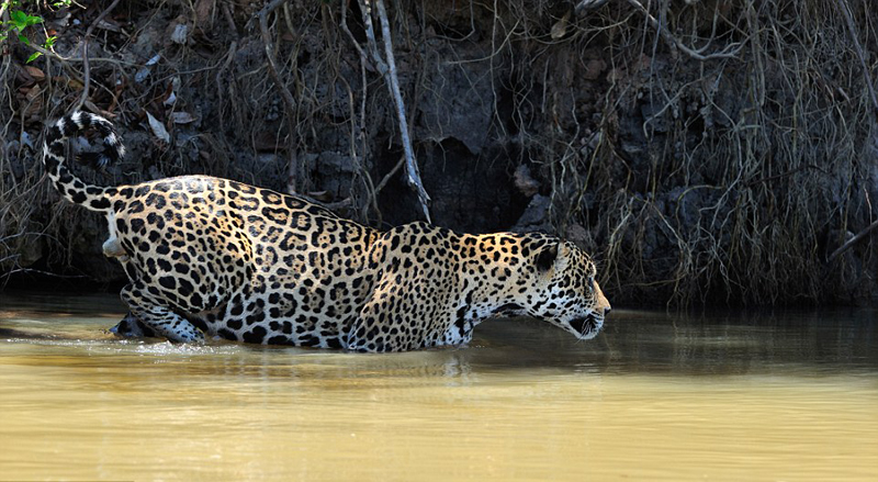 近日,在巴西境内一条河边上上演了惊险刺激的一幕。一头美洲豹在河边饮水时突袭一条未成年的鳄鱼,并最终成功猎杀,将鳄鱼变成了自己的盘中餐。一位恰巧路过的当地居民用相机记录下了这一罕见却又精彩过程。