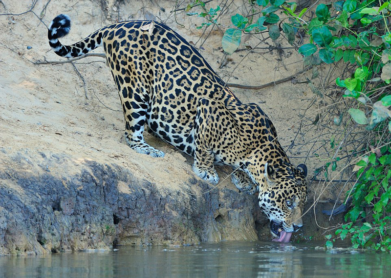 近日,在巴西境内一条河边上上演了惊险刺激的一幕。一头美洲豹在河边饮水时突袭一条未成年的鳄鱼,并最终成功猎杀,将鳄鱼变成了自己的盘中餐。一位恰巧路过的当地居民用相机记录下了这一罕见却又精彩过程。