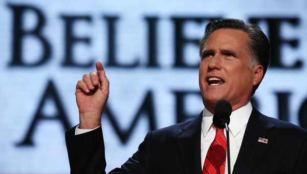 2012年8月30日,美国马萨诸塞州前州长米特·罗姆尼在坦帕举行的共和党全国代表大会上宣布接受共和党总统候选人提名,并提出自己的竞选主张。(新华/法新)