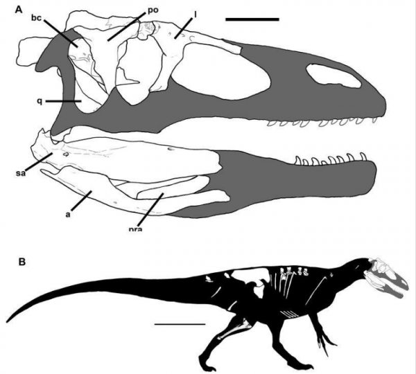 研究人员表示,这是“迄今所发现最完整的大盗龙属之一,头盖骨罕见完整”。