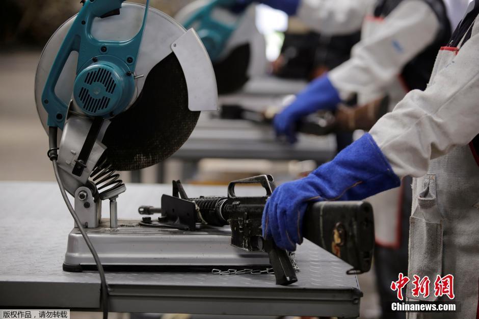 当地时间2016年7月21日,危地马拉首都危地马拉市,5419把缴获的武器被集体销毁。
