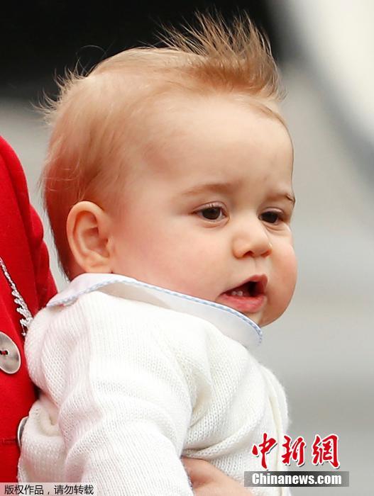 2014年4月7日,新西兰惠灵顿,威廉王子与凯特王妃带着刚满8个月的小王子一同到新西兰访问,凯特王妃身穿红色军装裙,而小王子显得非常的粉嫩可爱。