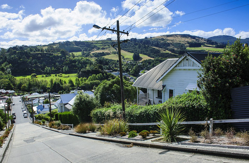 新西兰南岛的达尼丁有一条世界上最陡的街道,名叫鲍德温街。这条街全长350米,当相机与街道平行时,游客会产生房子的一边下沉到地面以下的错觉。
