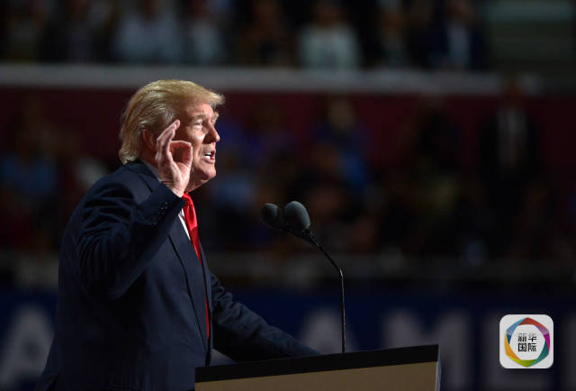 7月21日,在美国俄亥俄州克利夫兰举行的共和党全国代表大会上,共和党总统候选人特朗普发表演讲。 (新华社记者殷博古摄)