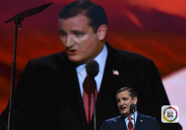 7月21日,美国国会参议员特德·克鲁兹在共和党全国代表大会上讲话。(新华社记者殷博古摄)