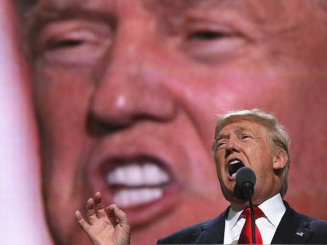 7月21日,克利夫兰,美国共和党全国代表大会,特朗普发表提名演讲。(图片来源:新华/法新)
