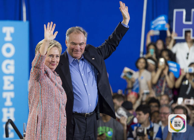 新华网北京7月23日电 美国民主党总统竞选人希拉里·克林顿22日打出一张“保险牌”:选定弗吉尼亚州联邦参议员蒂姆·卡因作为她的竞选搭档。